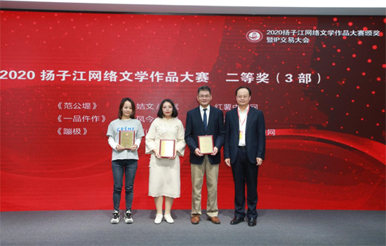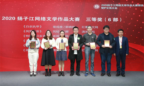 2020年11月13日,由江蘇省委宣傳部、省新聞出版局、省作家協會主辦,江蘇鳳凰文藝出版社承辦的2020揚子江網絡文學作品大賽頒獎暨IP交易大會在南京舉行。中國新聞出版傳媒集團董事長馬國倉發表主題演講。中國音像與數字出版協會第一副理事長張毅君書面致辭。江蘇省新聞出版局(省版權局)副局長李貞強出席并講話。江蘇省作家協會黨組成員、書記處書記賈夢瑋宣布獲獎名單。