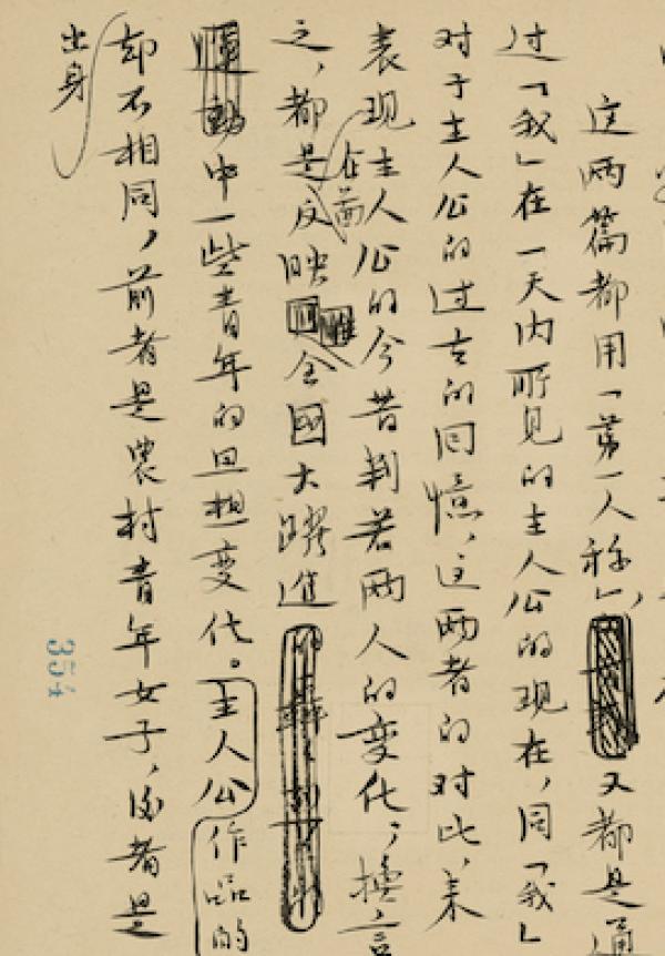 這一手稿是1958年寫的,我是搞畫史的,對文學史不是太了解,但里面有一個共通的現象,就是文藝為大眾服務越來越走向高潮,從這一手稿里面可以看出來。實際上當時有一個大背景,提倡寫短篇小說,別人容易看得明白,當時出了一批新作者,主要的目的是貼近生活。實際上從繪畫史的話,這些要求在畫史里面也存在的,這是可以相互參看的。
