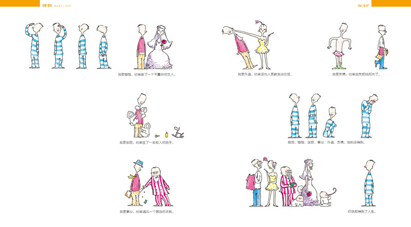 在《什么事都在發生》中,作者以深情又詼諧的筆法描繪了90則婚姻、愛情、兩性等關系中遭遇的人生困境,試圖以灰色幽默的方式治愈憂傷。在《關于上班這件事中》中,作者又用頑童一般戲謔的筆觸,將“上班”這件幾乎所有人都要面對的事解讀得妙趣橫生。