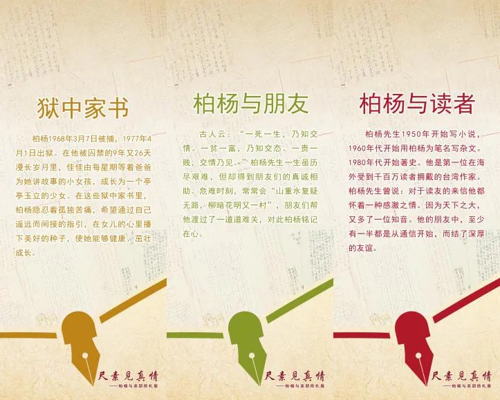 2020年11月17日,為紀念柏楊先生誕辰一百周年,“尺素見真情——柏楊與親朋信札展”在中國現代文學館拉開序幕,展覽展出柏楊先生與家人朋友讀者間書信95通。此展將持續到12月16日。