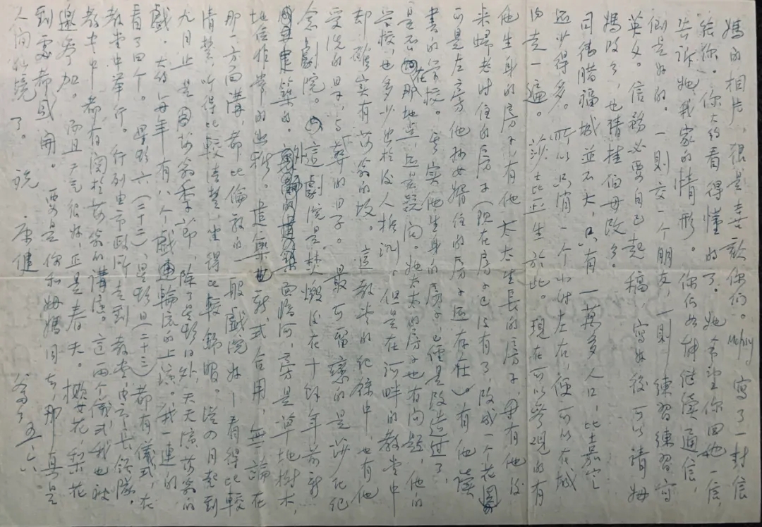 有二十天沒有接到你的信,所以前天接到你七月二十四日的信很是快慰??墒强戳诵藕?,也使我不安。你說你照了一相,不寄給我,因為太瘦了。我上次收到你的照相,不到半年,你是何等的胖,怎么不到幾個月,便忽然瘦了呢?是不是有什么毛病呢?現在在樂山,有沒有什么醫生?如有可靠的醫生,還得好好的檢查一下。第二件是你的眼睛愈來愈近視??磿皇娣?,常感疲倦。這也是很不好的。我發現眼睛近視以后,即去請醫生配了眼鏡,常常的戴著,二十多年來并沒有加深多少。有時期有時不戴,反是不好的??墒堑谝患卤闶堑门湟桓焙醚坨R。到哪里配去呢?