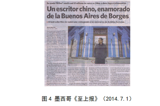 圖1至圖4是關于《解密》的拉美西班牙語媒體報到部分截圖4。根據筆者2014年6月份至12月份的統計,麥家《解密》一書在整個西班牙語媒體上的曝光次數多達40次,圖1至圖4的兩份拉美國家媒體報道,顯示了這本書在西班牙世界的熱度。中國當代文學作家在西班牙語圖書市場上如此大規模的曝光,這是中國當代文學史上的第一次。