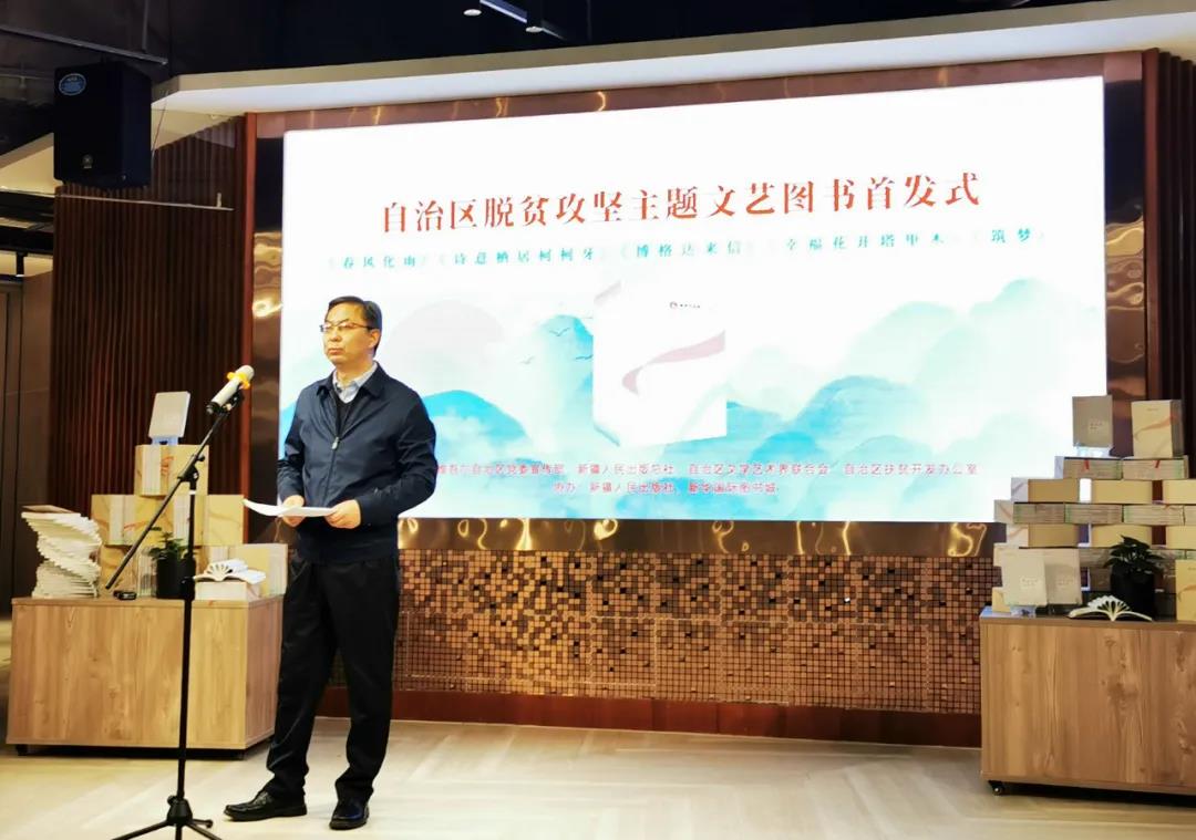 2020年12月4日,新疆脫貧攻堅主題文藝圖書首發儀式在烏魯木齊新華國際圖書城舉行。新疆維吾爾自治區黨委宣傳部副部長任彥賓、新疆維吾爾自治區扶貧辦一級巡視員陳雷、新疆人民出版總社黨委副書記、副總編輯范聰卓、新疆維吾爾自治區黨委宣傳部文藝處處長張太保、新疆維吾爾自治區扶貧辦脫貧攻堅督查專員張代茂、新疆人民出版總社出版編務部部長羅衛華,以及自治區黨委宣傳部機關團委代表、自治區文聯代表、新疆人民出版總社代表,作家代表、譯者等參加首發儀式。新疆維吾爾自治區文聯黨組成員、秘書長、新疆作家協會副主席熊紅久主持首發儀式。
