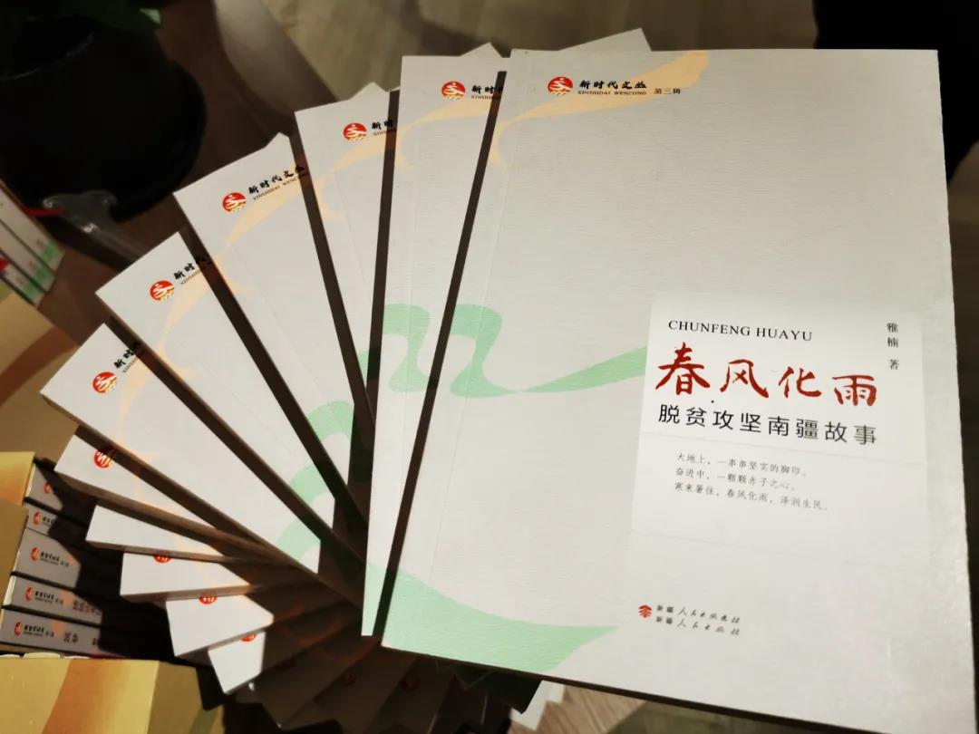 在新疆維吾爾自治區黨委宣傳部的統一安排部署下,新疆維吾爾自治區文聯,新疆作家協會、新疆人民出版總社聯合精心策劃,組織全疆優秀作家,奔赴全疆各地,深入人民生活,用拳拳赤子之心、深厚的國家情懷、充沛激昂的感情、細致入微的筆觸,創作了脫貧攻堅主題圖書《春風化雨——脫貧攻堅南疆故事》《筑夢——脫貧攻堅新疆紀事》《詩意棲居柯柯牙》《幸?;ㄩ_塔里木》《博格達來信》五本圖書,從不同視角全面書寫了新疆脫貧攻堅故事,反映了新疆各族人民群眾攜手奮斗奔小康的幸福生活。