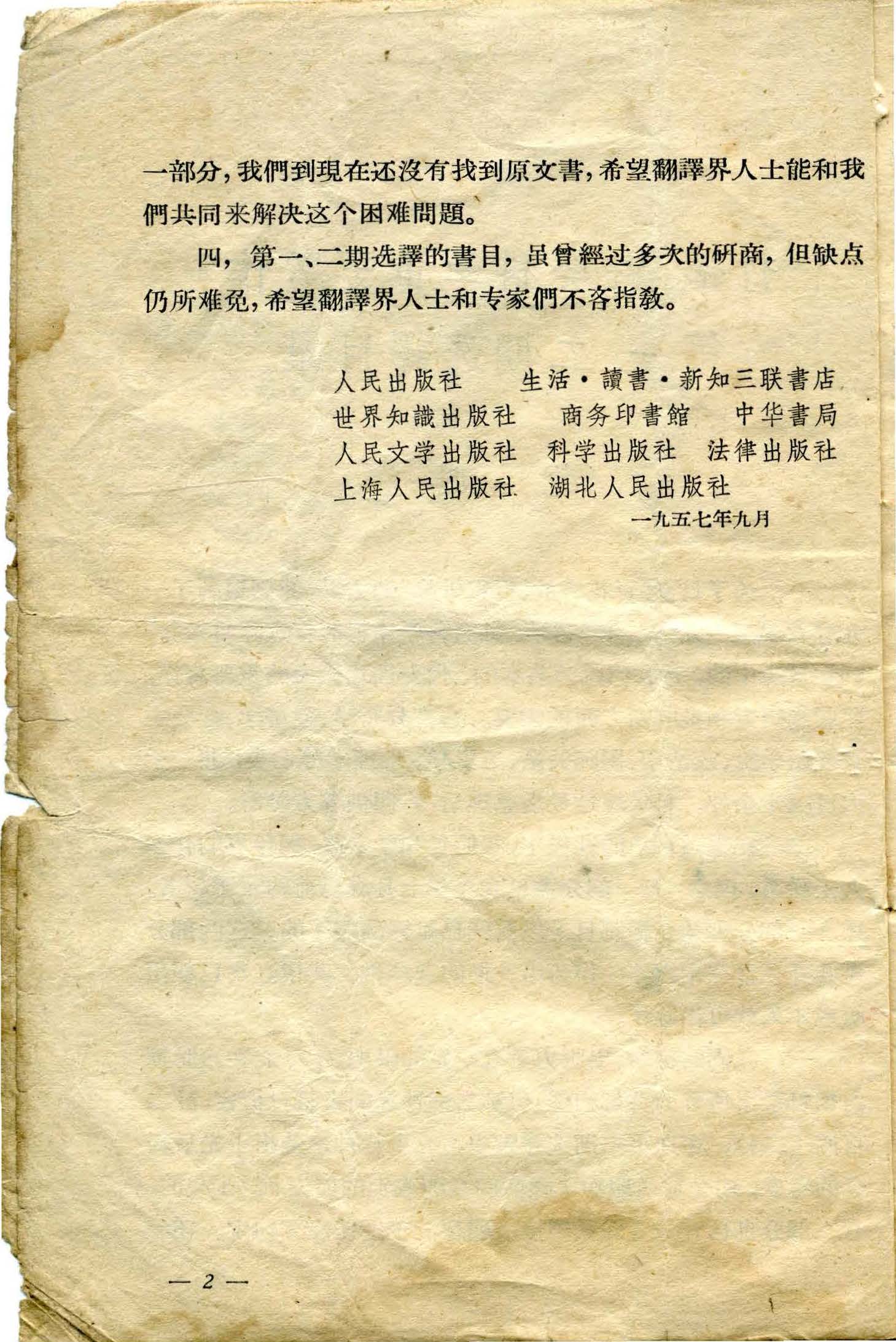 就此而言,我們不得不承認,1958年編制的、預計到1962年完成翻譯和出版的這項譯著規劃,是一場“大躍進”,一項至今也談不上完全實現的“愿景”。