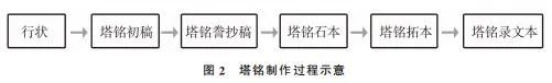 有鑒于此,茲以僧人塔銘為例說明文本生產過程對文本的影響。塔銘是嵌刻于塔上或埋藏于塔中,記載僧尼、居士生平的文獻。塔銘的制作要經歷一系列的程序:比如先由弟子或熟悉的人提供記載傳主一生詳情的行狀,然后邀請名人高士根據行狀來撰寫塔銘文本,塔銘文本撰成后由書家謄抄文本或書丹,最后由刻工將文本刊刻于石上,以上的一系列程序便形成塔銘文本生產的“操作鏈”(見圖2)。而在此過程中,傳主生平信息與形象也會發生相應的變化。