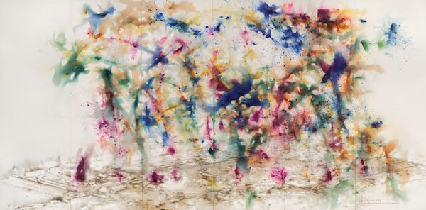 蔡國強,《為“夢游紫禁城”所作火藥草圖》,火藥、墨、紙,2020