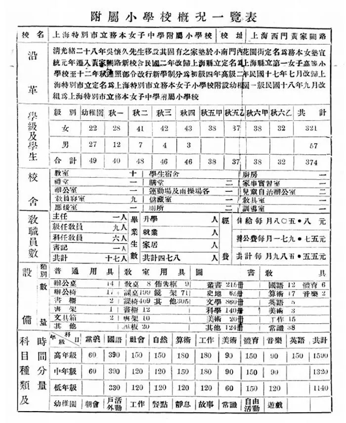 這里編輯“小記者”誤以為寫信者是女孩,實際當然不是。為表慎重,我特意從上海圖書館近代文獻館藏中翻檢出一本1930年印制的小冊子《上海特別市立務本女子中學附屬小學行政組織》,其中“附屬小學校概況一覽表”里顯示該校位于上海西門黃家闕路,1929年9月改組,秋一至秋四年級招收若干男孩,只是比例偏小。