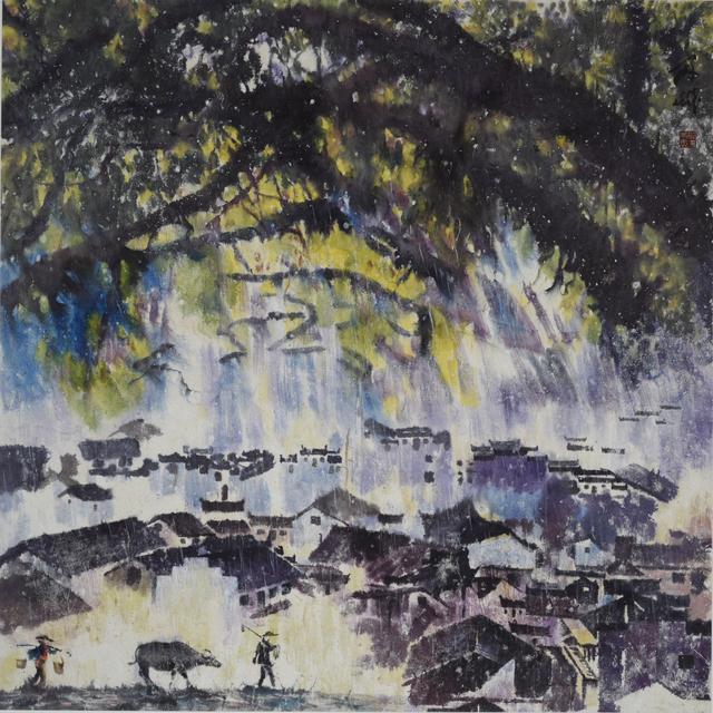 郭丙州中國畫參展作品《徽鄉秋雨》 96cmx96cm