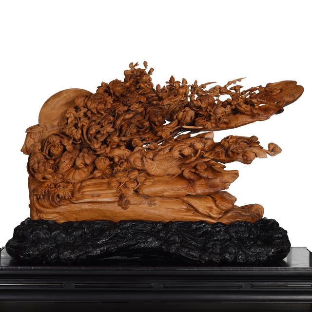 郭丙州藏品之花好月圓 老山檀香 70cmx28cmx48cm 作者徐國華
