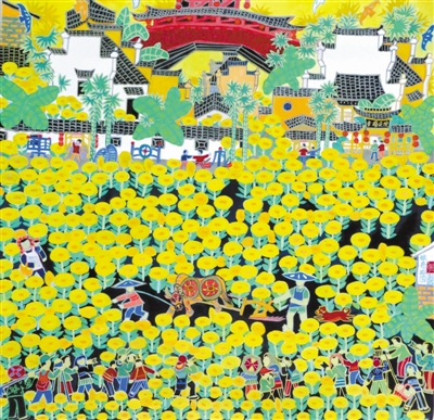 農民畫出自農民之手,深刻表現了廣大人民群眾“崇尚勞動、熱愛勞動、辛勤勞動、誠實勞動”的勞動精神。去年,中國美術家協會等單位舉辦的“決勝全面小康——第二屆全國農民畫作品展”上,就涌現出不少農民畫佳作。這些作品是農民畫創作者深入生活、融合切身體會創作而成。其中,一些反映扶貧脫貧感人事跡的優秀作品,成為偉大時代的生動寫照。展覽還展出了融合農民畫元素的絲巾等文創產品,體現出文化產業與藝術創作相結合的廣闊前景。打造特色農民畫產業基地,也有助于農民畫家利用自身創作成果實現脫貧致富。陜西戶縣農民畫文化產業示范基地、浙江舟山漁民畫傳承教學基地等,既原汁原味地保留了不同地區傳統文化特色,同時有效引導了農村文化產業發展,創新了精準扶貧方式方法。