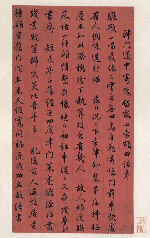 津門道中寄懷岱霖、心壺、頌田諸弟驪歌一唱最依依,云自無心鳥自飛。遙憶門前車歇處, 有人惆悵送行歸。落日沉沉下古津,卸裝茅店拂征塵。 不知此際槐陰下,執算投壺有幾人。故人昨夜聯床話,一種離情系我懷。曉日初紅車緩緩,又牽殘夢到書齋。短長亭子舊經過,四度津門策蹇驢。添得叢殘書數篋,歸裝笑比昔年多。亂后家人返故居,青氈愿守舊門閭。年來天假寬間福,遲我功名教讀書