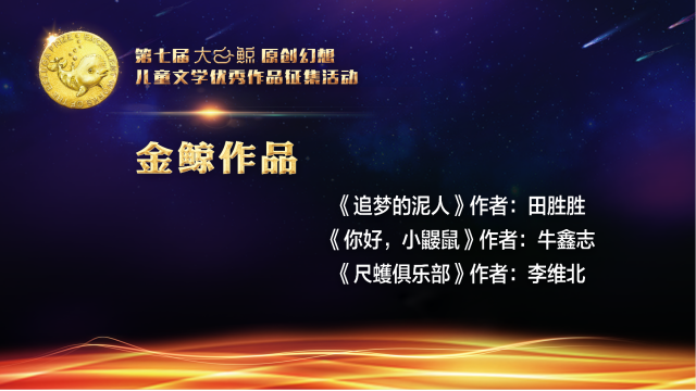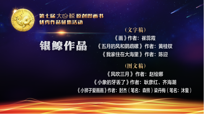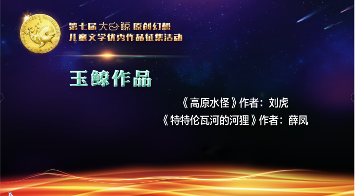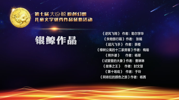 當天,在線揭曉了第七屆“大白鯨”原創幻想兒童文學優秀作品征集活動的獲獎名單,16部原創幻想兒童文學作品以及11部原創圖畫書作品獲獎。