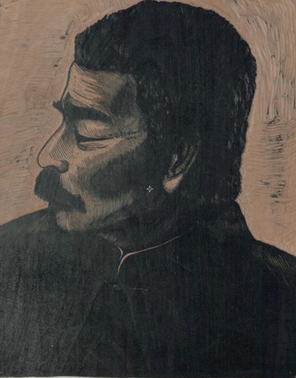魯迅側影,劉峴木刻原版,34.3×27.7×1.8cm,1959年,劉峴女兒王人殷捐贈 北京魯迅博物館藏