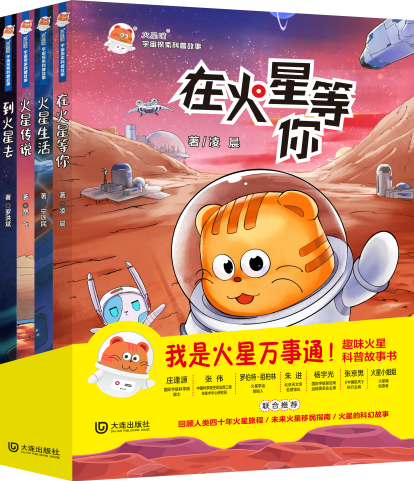 為了激發青少年對太空探索的興趣,提高青少年科學素養,培養青少年的創新精神和開拓意識,普及關于火星和航天的科學知識,科普與科幻作家凌晨策劃并主筆了《火星喵宇宙探索科普故事》叢書,該書由火星學會和大連出版社合作出版,以火星喵這一獨特ID的視角,觀察火星,紀錄人類對火星的科學探索之路,想象未來人類在火星上的生活。這套叢書的主角是一只呆萌可愛、穿著航天服的胖貓——火星喵,它不僅是星際萌寵,還身懷許多神奇本領,被稱為“火星萬事通”。