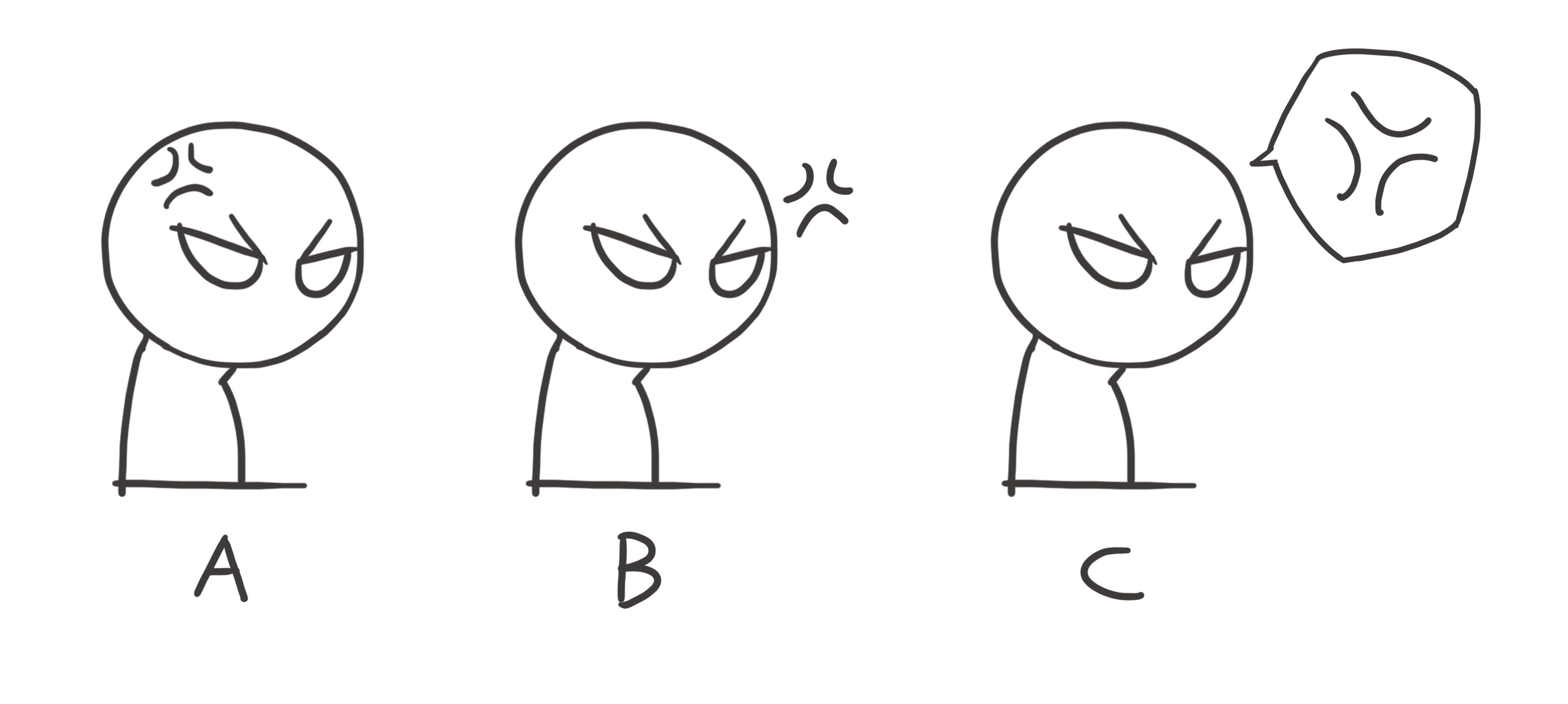 B與C均是發怒的青筋脫離肖似性的典型使用(圖2)