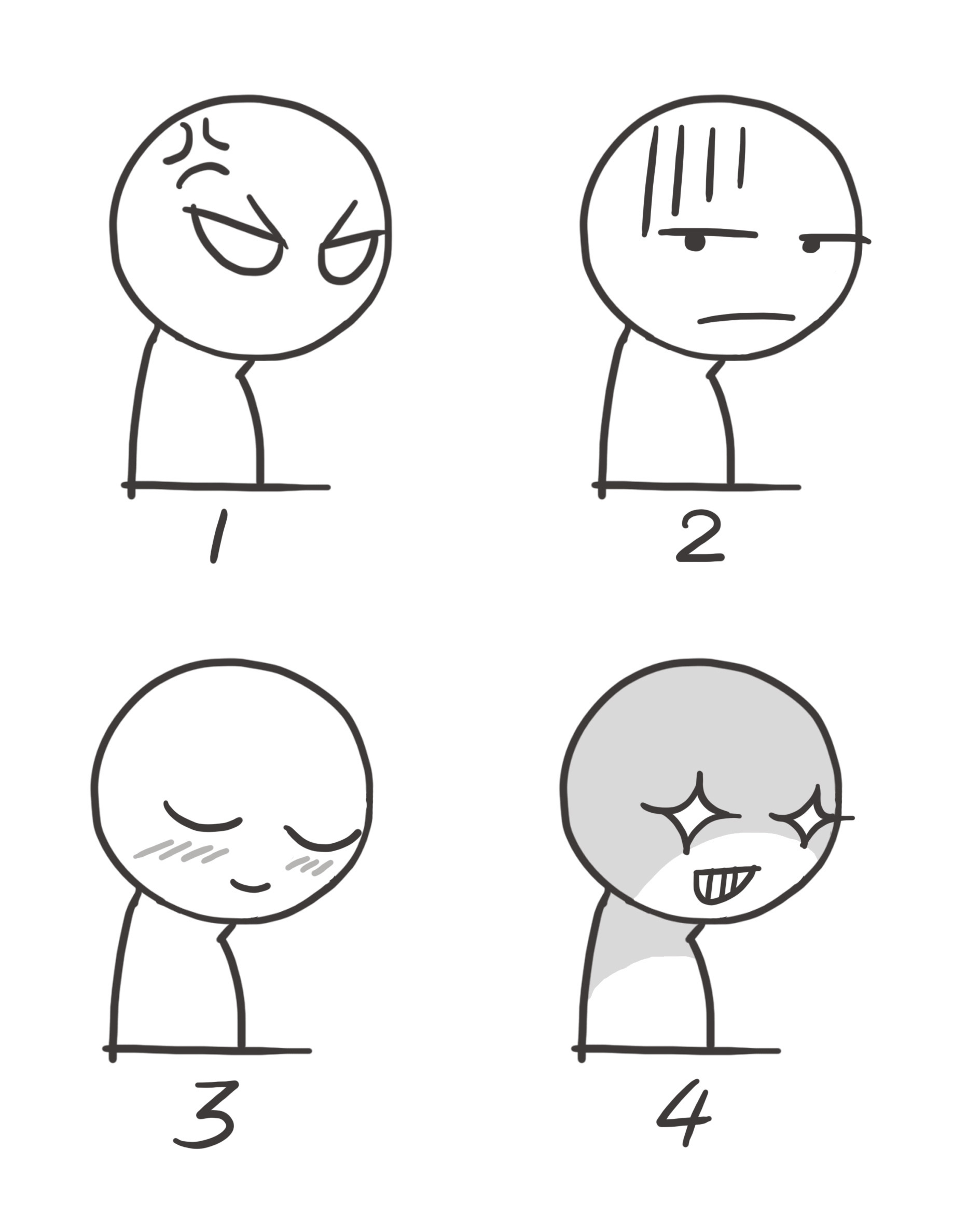 當動畫和漫畫作品嘗試塑造角色的面部表情或對角色情緒進行視覺化的過程中,我們經??梢砸姷饺鐖D1所示的內容,在這里稱之為“表情元素”——當角色憤怒生氣時,他額頭上長出三四根向內彎曲的弧線,看上去如同青筋暴起;當角色尷尬沮喪時,他眼眶上方出現幾條豎線,似乎冷汗直冒;當角色害羞臉紅時,他臉上會出現幾條斜線;當角色陰沉著臉或者密謀詭計時,其面部會出現“自下而上地打光”的效果,額頭上部產生一塊陰影,可能露出或不露出眼睛……