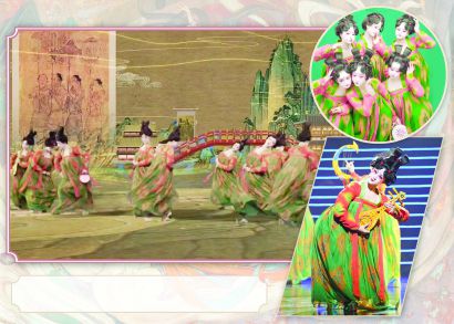 “鬢云欲度香腮雪,衣香袂影是盛唐?!贝汗澠陂g,一群嬌憨靈動、活潑可愛的“唐朝小胖妞”憑借一支古典舞火遍網絡。在由鄭州歌舞劇院創排的《唐宮夜宴》中,她們走出《搗練圖》《簪花仕女圖》的古老畫卷,穿梭在婦好鸮尊、蓮鶴方壺、賈湖骨笛等國寶文物之間,把大唐風華融于少女的一顰一笑中,時而雍容嫻雅,時而天真爛漫,為觀眾呈現出一個中國版的“博物館奇妙夜”。國寶、國風與國潮同頻共振,激蕩出濃濃的煙火氣,生動展示了大氣磅礴的盛世文化。