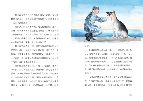 《藍海金鋼》在文本和插圖上,都盡可能地做到兼顧嚴謹與美感。小到臂章、軍銜和軍服,大到全書情節的安排、情感的推進回旋,無不在編輯關注的范圍。該書的責任編輯在編輯加工過程中曾多次向作者以及部隊戰士請教,盡力還原事件發生的時代、時段,當時的環境條件,每個情節、每張插圖、每個術語,都與作者認真討論,經作者親自確認。為了全書的不到20張插圖,責編前后查找了幾千張相關的照片,中國軍網、南海研究論壇、解放軍新聞傳播中心等網站。雖然是文學作品,但在知識層面不可隨意,這部小說很可能幫孩子建立起對海軍、南海和軍犬的印象,甚至是孩子接觸相關領域的第一本書。