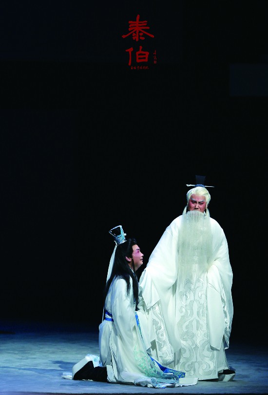 人的境界是戲曲文學的最高意旨。泰伯是德行完美的圣賢,如何將其德行“境界”轉化成感人的戲劇表達則是舞臺創作的核心內容。劇作家羅周以慣用的“四折一楔子”的結構形式,完整地把歷史文獻中的“泰伯”給予形象化和戲劇化,將他面對權謀、私欲、暴虐、殺戮時的忠、孝、智、勇,延展成以家國為重、以百姓為重、以四海天下為重的精神高度。劇中被刻意提出并渲染的“讓”,是屬于泰伯個人抉擇的謙讓行為,也是他面對家國利益審時度勢的政治智慧。正如司馬貞《史記索隱》所謂“太伯作吳,高讓雄圖”,這個雄圖即是存在于泰伯、姬昌心目中的家國藍圖,他們之間的“讓”,讓出了歷史擔當,讓出了生命境界,讓出了民心向背,也讓出了彼此攜手、正視外侮、締造盛世的文化理想。