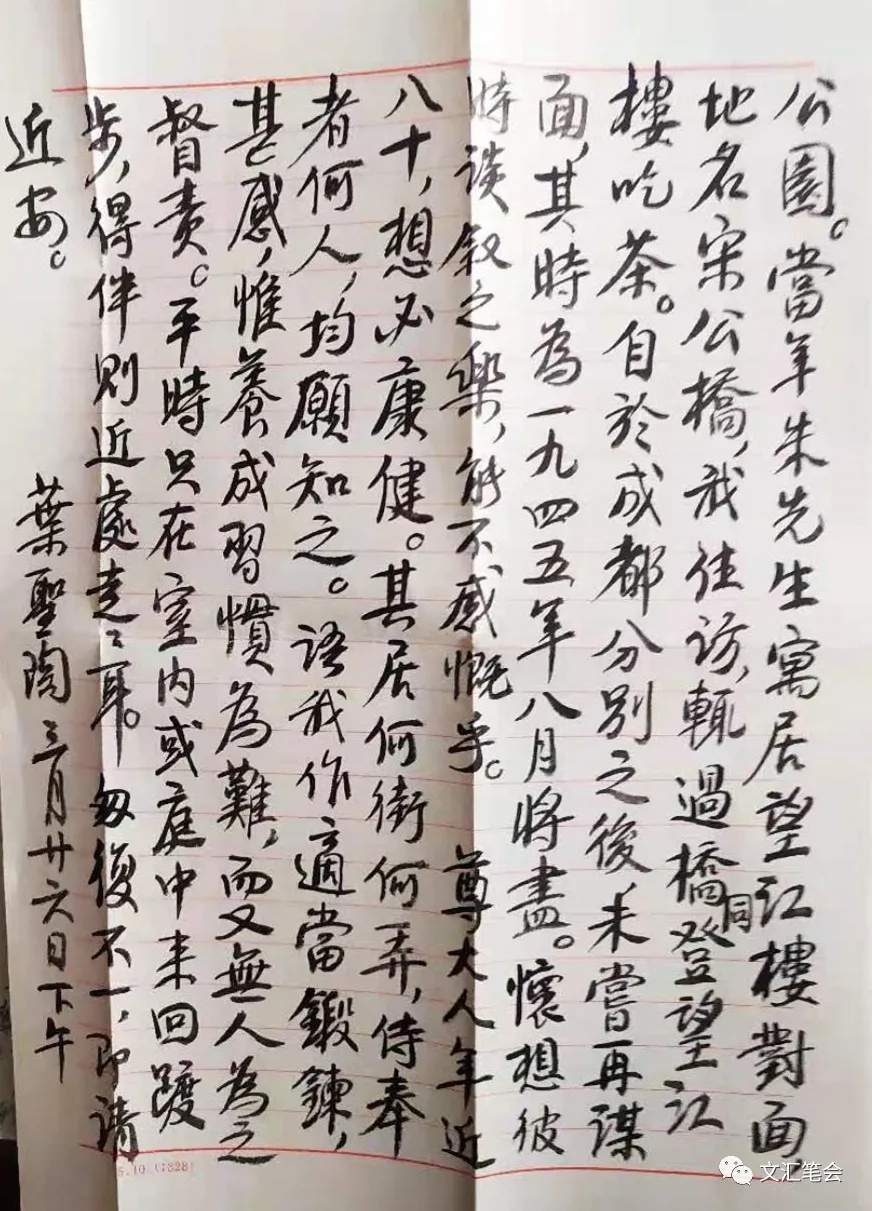 香還先生:廿三日香雪?;輹?,昨日接讀。四株古柏可觀,惜周圍局促,不能自較遠處易地望之,玩其種種姿態。七一年三月間我曾往觀,曾有此想。保圣寺羅漢,讀者謂與紫金庵風格相同。唯紫金庵尚存其原來規模,背景俱在,保圣寺則大殿早圮,移其完好之數尊羅漢于他所,不復見原來之布局矣。承詢拙詞同訪江樓一語。此江樓系望江樓,在成都東門外,瀕岷江,今為公園。當年朱先生寓居望江樓對面,地名宋公橋,我往訪,輒過橋同登望江樓吃菜,自于成都分別之后,未嘗再謀面,其時為一九四五年八月將盡。懷想彼時談敘之樂,能不感慨乎。尊大人年近八十,想必康健。其居何街何弄,侍奉者何人,均愿知之。語我作適當鍛煉,甚感,唯養成習慣為難,而又無人為之督責。平時只在室內或庭中來回踱步,得伴則近處走走耳。匆復不一,即請