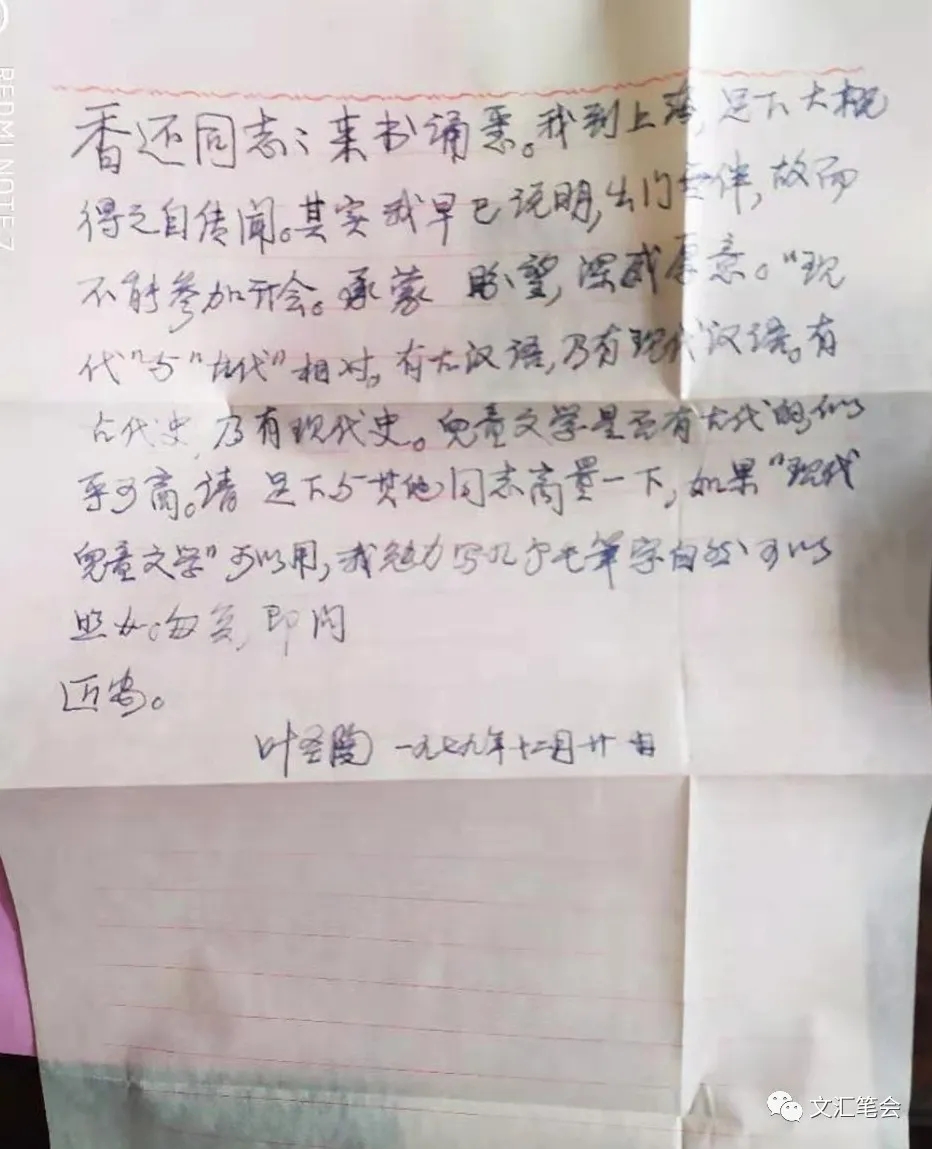 香還同志:來書誦悉。我到上海,足下大概得之自傳聞。其實我早已說明,出門無伴,故而不能參加開會。承蒙盼望,深感厚意?!艾F代”與“古代”相對。有古漢語,乃有現代漢語。有古代史,乃有現代史。兒童文學是否有古代的,似乎可商。請足下與其他同志商量一下。如果“現代兒童文學”可以用,我勉力寫幾個毛筆字自然可以照辦。匆復,即問