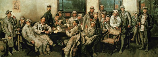 應當說,除非研究歷史的學者,大多數人對歷史的認知多出于某種感性記憶,尤其是出于美感的記憶。如詩歌、散文、小說、音樂和繪畫等給予人們的情感或形象印記,要遠遠深刻于那些純文獻在腦海中的存儲。這其中,歷史畫給予人們的歷史記憶或許更為優先。因為它把歷史的特定時空有效地轉換為了一個平面瞬間的敘事。而歷史畫的創作難度,也便體現在如何能夠把一章歷史故事、一段歷史時間、一個歷史現場等,壓縮并轉換為一個歷史瞬間。上述那些經典歷史畫均產生于20世紀五六十年代。那是一個將蘇聯現實主義繪畫引進中國而開啟中國歷史與現實題材美術創作的高潮時期。為了將歷史時空有效地轉換為一個平面瞬間,畫家在如何選擇富有寓意的事件情節,如何制造畫面上富有戲劇性的人物關系,如何從歷史敘事到史詩重鑄等方面,已形成了一整套的歷史畫創作方法與藝術理論。因而人們在重溫那些歷史畫時所產生的久違之感中,實際也夾雜了許多對那個時代歷史畫創作方法與審美追求的感味。畢竟,那是一個用理想主義的激情去描繪歷史的時代,歷史畫作里無不充滿了那個時代對歷史的理想精神重塑與英雄主義闡釋。