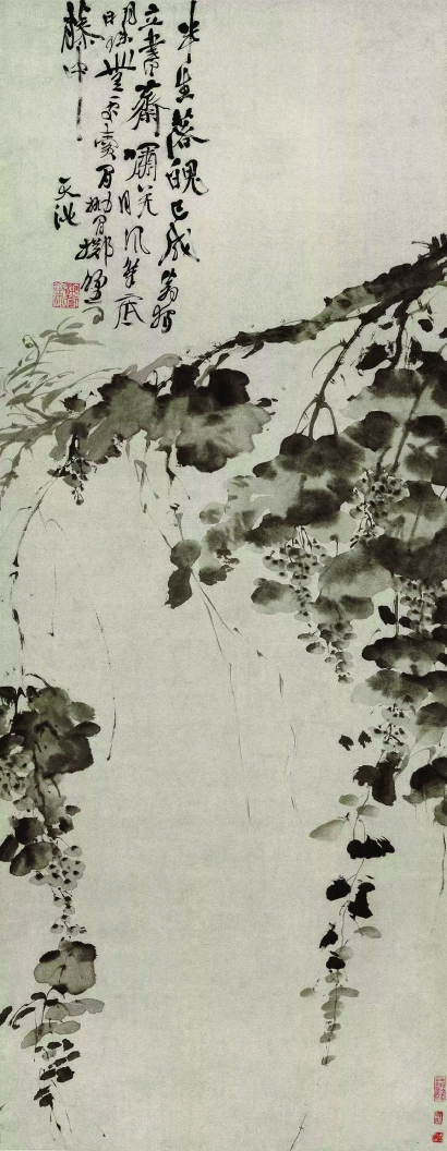 徐渭在《水墨葡萄圖》(故宮博物院藏)上自題詩:“半生落魄已成翁,獨立書齋嘯晚風。筆底明珠無處賣,閑拋閑擲野藤中?!笔惆l了一生坎坷不遇的痛苦悲愴。