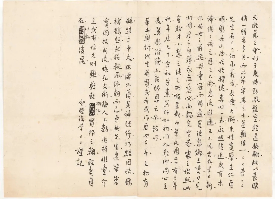 碑文原稿有四處信息未加確認,均以“××”標記。另外有兩處涂抹修改痕跡,顯示了此件碑文的原稿屬性。隨碑文寄出的短箋內容如下: