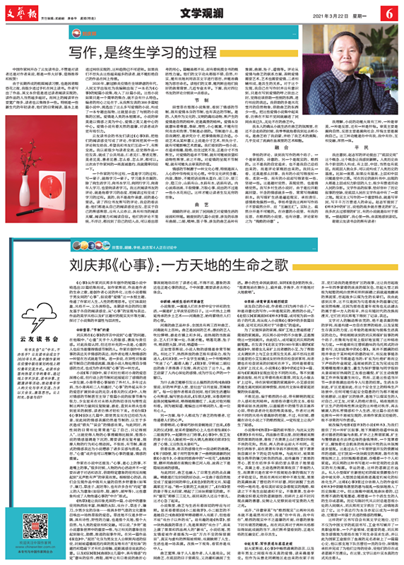 本文為劉慶邦對云友讀書會《劉慶邦<心事>:一方天地的生命之歌》一文的作家回復,發于中國作家網與《文藝報》合辦“文學觀瀾”???021年3月22日第6版