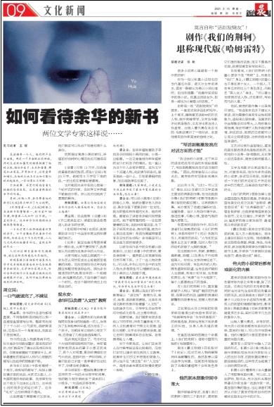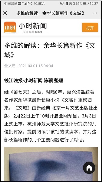 3月1日,錢江晚報新媒體小時新聞發布一組筆談《多維的解讀:余華長篇新作<文城>》,杭州師大文藝批評研究院洪治綱、郭洪雷、王侃、邵寧寧、詹玲、劉楊等幾位老師在筆談中對《文城》進行了討論。