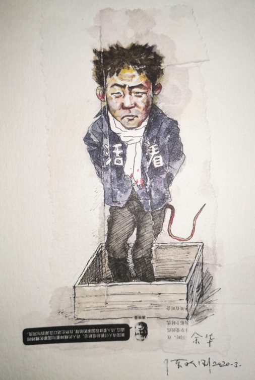 金赫楠注意到,《文城》隨書夾贈的書簽上印著一幅余華畫像,畫中余華的上衣正面赫然印著兩個醒目的大字“活著”——這是在暗示“活著”已經同小說家余華徹底地互為表里? (書簽作品為藝術家張曉剛為余華創作的生肖鼠漫畫)