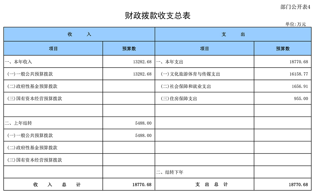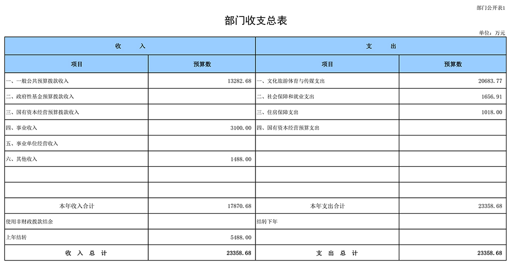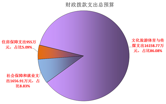 文化旅游體育與傳媒支出(類)支出10918.00萬元,占比82.20%;社會保障和就業支出(類)支出1409.68萬元,占比10.61%;住房保障支出(類)支出955.00萬元,占比7.19%。