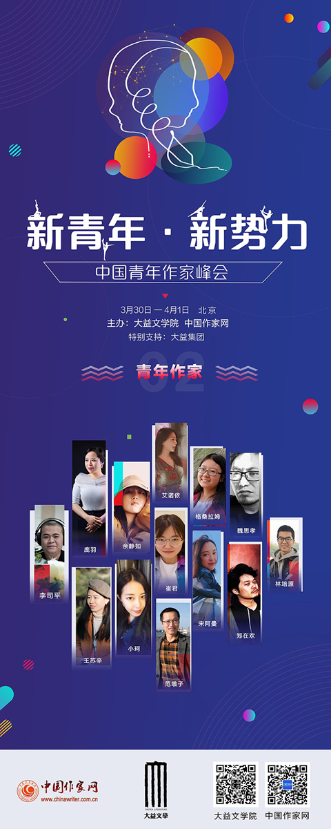 3月30日至4月1日,大益文學院與中國作家網聯合主辦“新青年?新勢力”中國青年作家峰會,13位青年作家與8位文學導師,聚焦我們這個時代青年寫作的歸途與來路,航標與遠方。