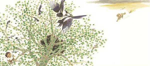 不得不說,在我們的故事型原創繪本中,存在著不少不會講有結構的故事的作品。故事講不好,“小”繪本立不起來,更無法“大”起來。在這個重要方面,《喜鵲窩》給我們提供了一個難能可貴的經驗。
