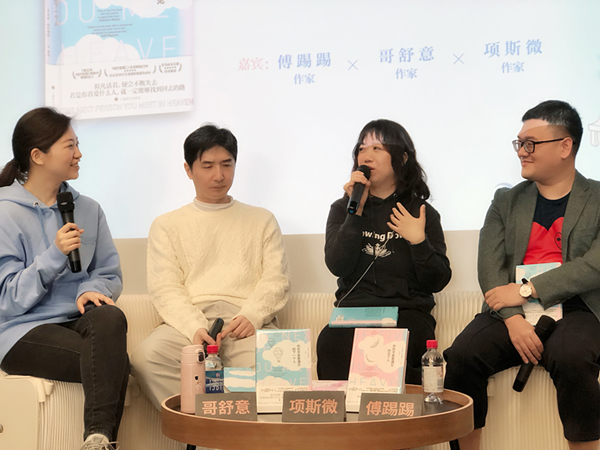 4月18日,《你在天堂遇見的下一個人》新書分享會在朵云書院舉辦,作家哥舒意、項斯微、傅踢踢與讀者分享了自己的閱讀感受。