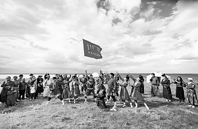 內蒙古蘇尼特右旗烏蘭牧騎隊員到牧區演出。新華社發(東哈達攝)