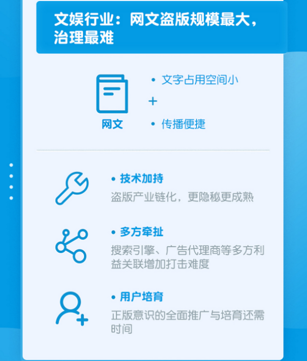 網絡文學行業的健康發展離不開對版權的重視與保護。近幾年,在政府主管部門的大力支持以及各企業持續不斷的維權投入下,網絡文學行業的版權環境得到了初步凈化。