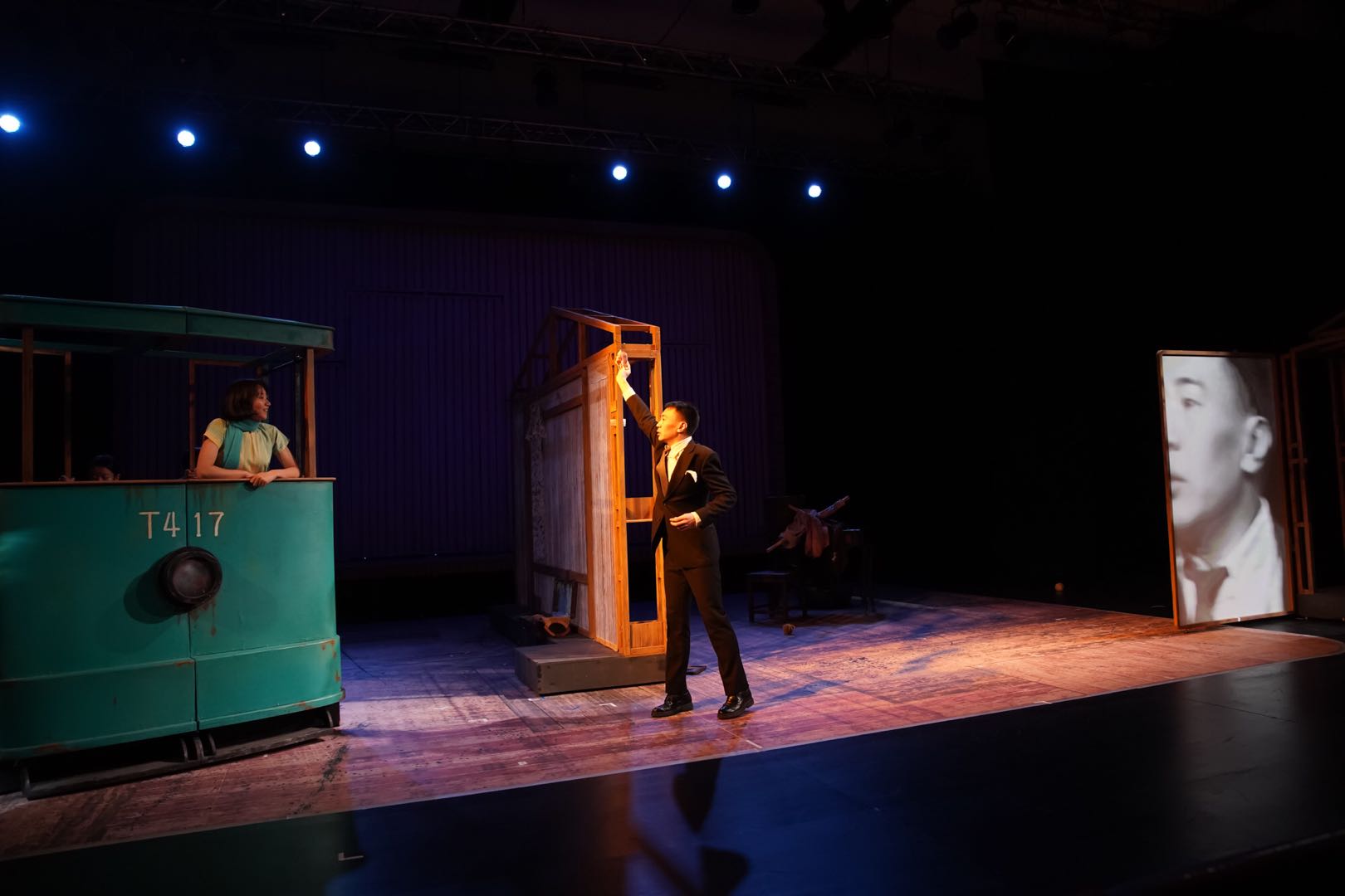 為了實現戲里戲外的“十字街頭”,該劇讓演員表演與影像多媒體互動、結合,并不時讓老電影影像、現場拍攝影像與演員表演并置,利用間離效果,讓演員“跳進跳出”。在舞臺布景上,該劇選取了具有年代感和地域特色的鐺鐺車為主要元素,通過它的變化呈現街景、鴿子間等空間。劇中,四個“畢業即失業”的青年蝸居在大都市最便宜的簡易房內,在十字路口的抉擇中,“老趙”和一墻之隔的“楊小姐”在不知身份的情況下漸生情愫。演員們也將跳出這些經典形象,討論著沈西苓、趙丹、白楊等圍繞這部電影的老一代電影人軼事,并從這部電影作品和當年的主創身上,表現青年人走出十字街頭的勇氣和力量。