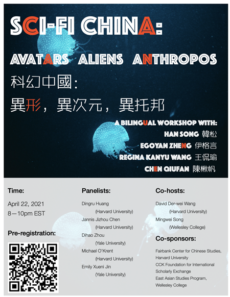 2021年4月23日,由哈佛大學費正清中國研究中心和韋爾斯利學院東亞研究系聯合推出的科幻中國工作坊在線上成功舉行。本次工作坊主題為“科幻中國:異形,異次元,異托邦”,由哈佛大學的王德威教授和韋爾斯利學院的宋明煒副教授主持,邀請韓松、陳楸帆、伊格言和王侃瑜等四位科幻作家及黃丁如、周迪灝、陳濟舟、歐慕康(Michael O'Krent)和金雪妮等五位青年科幻學者參加,圍繞主題進行發言和討論。共有兩百余名觀眾參與本次活動。