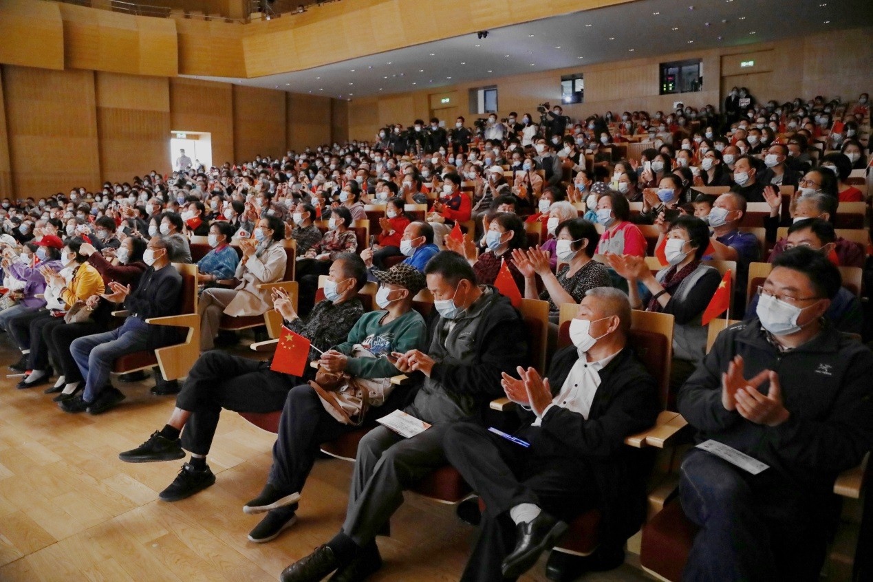 活動現場,已經92歲高齡的李光羲還與熱心讀者共同演唱了《松花江上》,鄧玉華與從讀者中招募的合唱團成員共同演唱了《情深誼長》,才旦卓瑪演唱了《毛主席的光輝》。通過老藝術家的講述和演繹,現場觀眾重溫了這部以黨史為脈絡,以音樂、舞蹈等形式展現中國人民謀求解放歷史縮影的大型史詩作品。最后,全體觀眾高聲合唱《沒有共產黨就沒有新中國》。