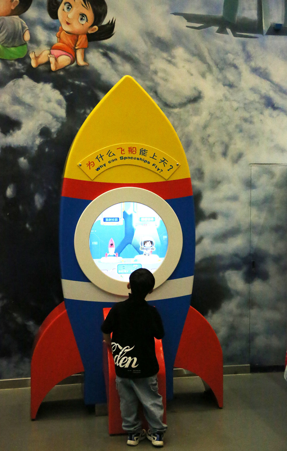 2021年5月19日,小朋友在中國科學技術館體驗科普設備,了解飛船上天過程。新華網發(劉廣生 攝于北京)