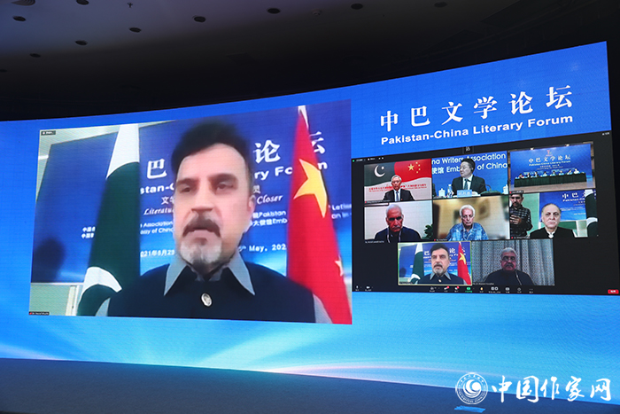 論壇上,周瑄璞、元康、武歆、霍俊明、周袁等中國作家、詩人、學者和穆斯坦薩爾·侯賽因·塔拉爾、賈米·錢迪歐、阿巴辛·尤薩夫扎伊、穆尼爾·艾哈邁德·巴迪尼、馬克蘇德·賈弗里等巴基斯坦作家、詩人輪流發言,圍繞論壇主題和“文學在中巴命運共同體中的獨特作用”“中巴文學傳統與未來趨勢”等分議題展開廣泛深入的交流。大家表示,疫情雖然阻隔了大家的相聚,但中巴兩國人民始終心心相連。文學是中巴兩國溝通交流的重要橋梁和紐帶。隨著兩國學習漢語和烏爾都語的人數不斷增加、經典著作互譯出版合作的開展,中巴文學交流呈現出良好勢頭和巨大潛力。相信此次論壇的舉辦,必將進一步深化中巴作家和人民的相互了解,切實促進兩國的民心相通,更好地鞏固雙方的文學交往,把兩國文學合作推向全新階段,為攜手打造新時代更加緊密的中巴命運共同體作出積極貢獻。