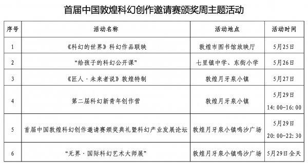 首屆中國敦煌國際科幻創作邀請賽提名名單