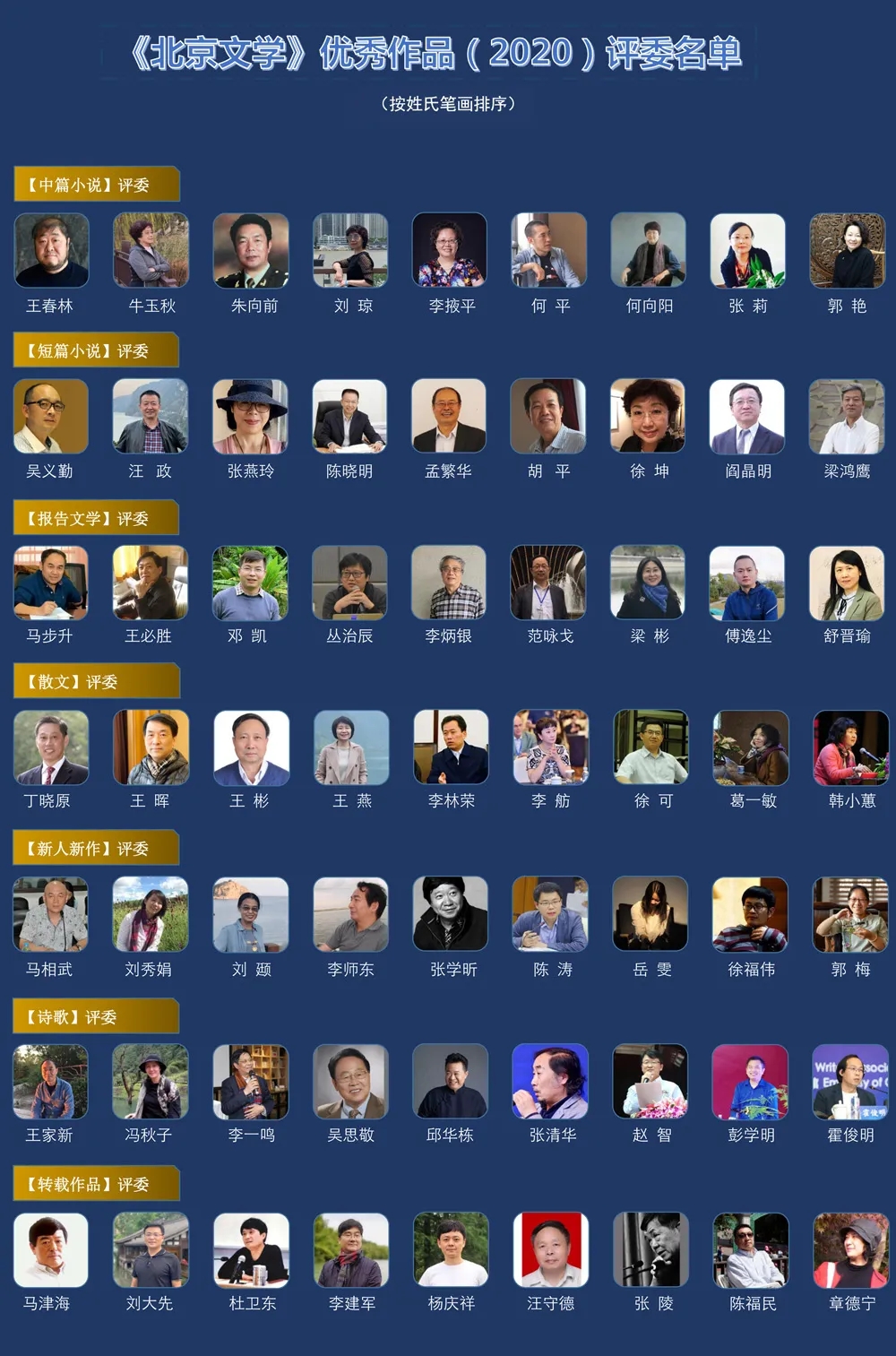 由北京文學月刊社舉辦的《北京文學》2020年度優秀作品評選近日揭曉,包括《北京文學》(精彩閱讀)的原創中篇小說、短篇小說、報告文學、散文、詩歌、新人新作6大門類的32篇作品和《北京文學?中篇小說月報》轉載的6部中篇小說入選。