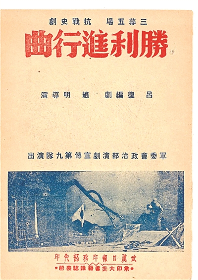 好在,其他大部分抗敵演劇隊演出說明書多被胡傳敏收入囊中,如《為國忘家》《勝利進行曲》等。這些演出說明書在上海圖書館辦展期間展出,讓更多的人了解抗戰時期中國話劇人如何用自己的行動宣傳抗日事跡。