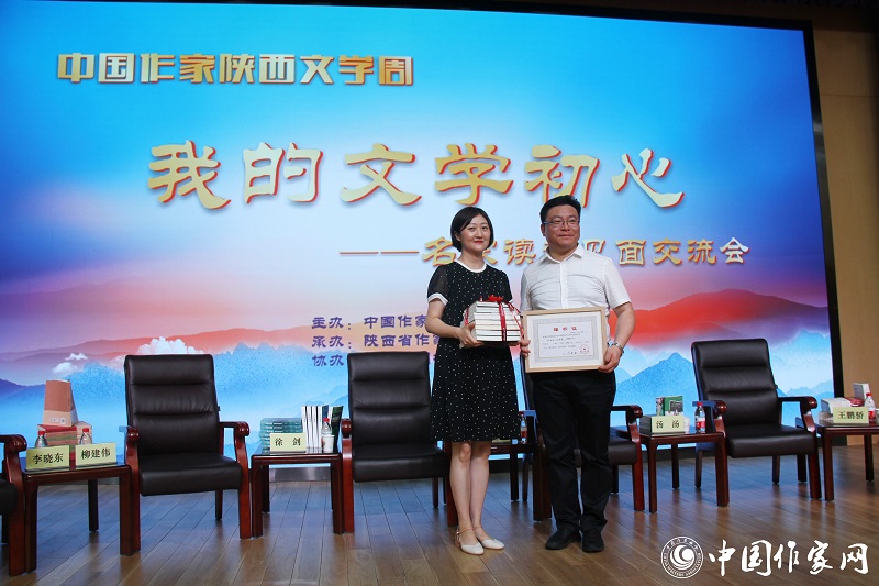 交流會開始前,李曉東代表中國作協社聯部向陜西省圖書館贈送《英雄時代》《大國重器》等圖書十種六十冊,陜西省圖書館向中國作協社聯部頒發證書。