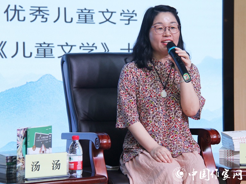 兒童文學作家湯湯也是一名小學語文教師,她坦言,還未開始寫作前曾對兒童文學存有某種偏見,認為兒童文學講述的就是“王子與公主從此過上了幸福的生活”“大灰狼與小白兔”之類的簡單故事,沒有深刻內容,只供兒童閱讀,與成人無關。通過現場講述童話作品《大海的盡頭在哪里》,她向讀者介紹了自己轉變偏見的過程,認為兒童文學其實并不簡單,它的內涵極其豐富;兒童文學也能反映現實生活,揭露社會現狀;優秀的兒童文學作品可以激發孩子們的創造力與想象力。她希望自己能繼續保持文學初心,用愛與智慧,為孩子們寫出更多更好的兒童文學作品。