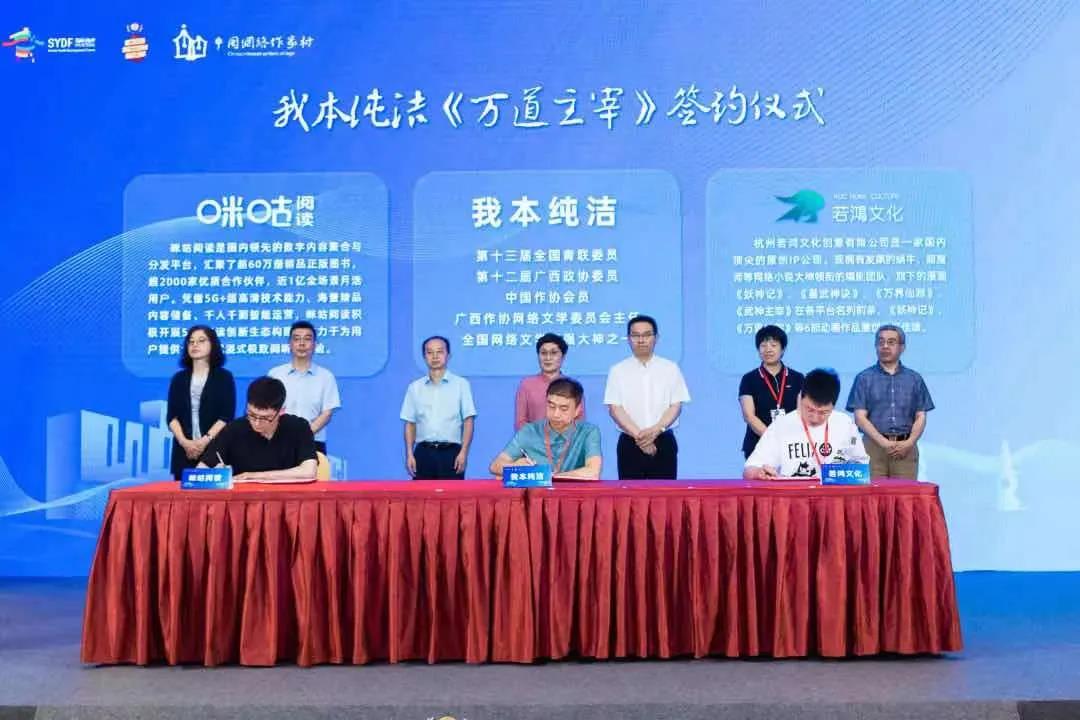 論壇期間,由咪咕閱讀和若鴻文化主辦的新書《萬道主宰》簽約儀式舉行,我本純潔正式入駐咪咕閱讀。