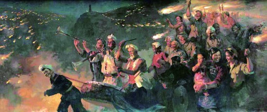 此外,藝術創作還要體現出對民族風格、中國氣派的充分表達,這是一個國家能立于世界之林的底氣。董希文的《開國大典》、石魯的《東渡》、趙望云的《雪天馱運》、劉文西的《祖孫四代》、沈嘉蔚的《紅星照耀中國》、沈堯伊的《地球上的紅飄帶》等作品,在選題、藝術表現手法、風格特點等方面,都體現了國家和民族發展道路上的精神追求,極具中國氣派。